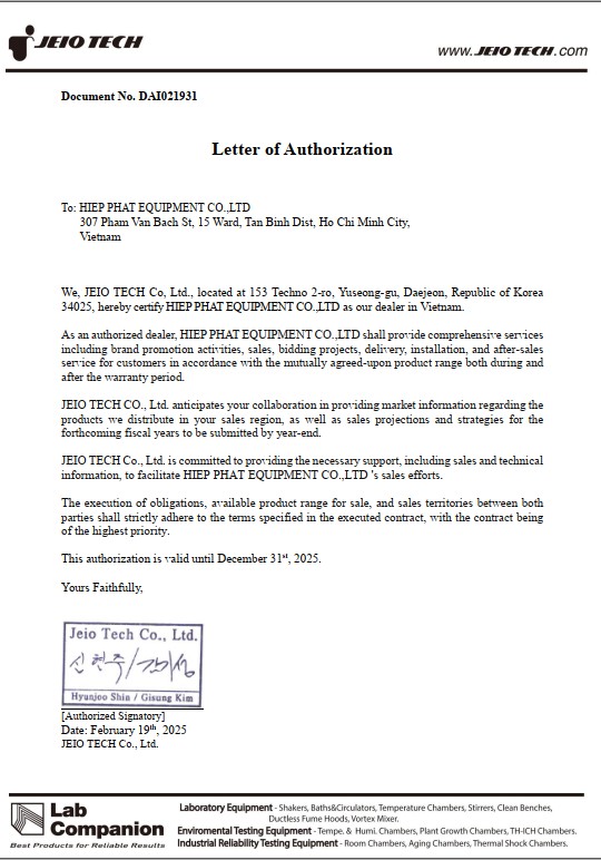Nếu quý khách hàng có nhu cầu tìm mua các dòng thiết bị phòng thí nghiệm hãng Jeiotech, đừng ngần ngại liên hệ với Hiệp Phát qua SĐT: 0919.537.653 – Mr. Tú hoặc Email: sales5@thietbihiepphat.com để được hỗ trợ kịp thời.