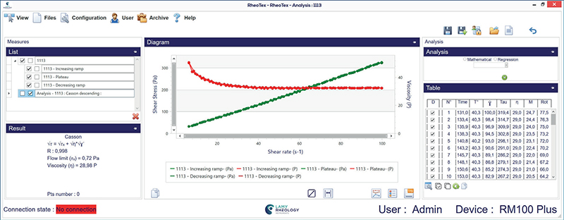 Phần Mềm Lamy Rheology Rheotex điều khiển cho tất cả các đo độ nhớt FIRST, RM100, RM200, DSR500 và TX-700