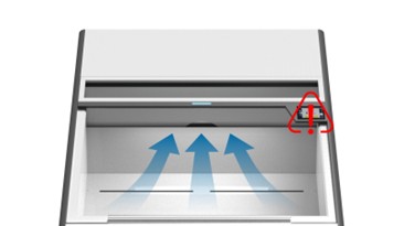 Bao gồm cảm biến thông báo trạng thái hoạt động phía trước để cung cấp cảnh báo bằng hình ảnh và âm thanh, ngăn chặn trước các mối nguy hiểm tiềm ẩn. Thiết bị điều khiển Lưu lượng Khí Biến đổi (VAV) có nút để ngay lập tức tối đa hóa luồng khí trong các tình huống khẩn cấp.