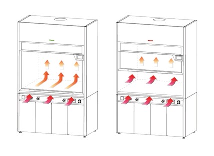 Giữ đúng chức năng ban đầu của tủ hút khí độc với thiết kế ống dẫn để ngăn chặn xoáy khí trong buồng và giảm thiểu các điểm mù trong khí thải.