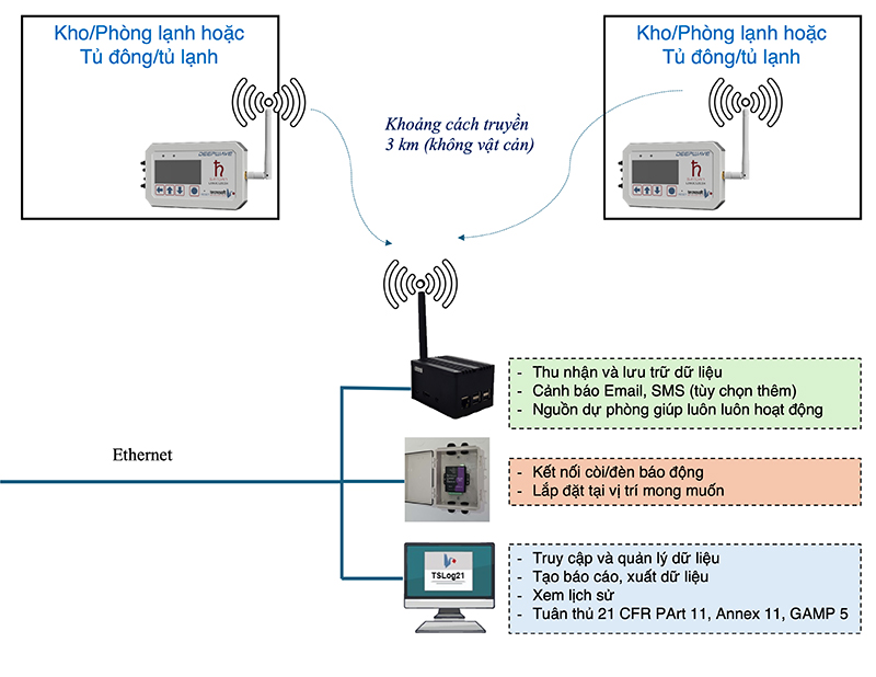 Hệ thống này đặc biệt hữu ích trong các kho lưu trữ Vaccine hoặc sản phẩm Dược Phẩm nhạy cảm, nơi mà sự biến động nhiệt độ chỉ vài độ có thể gây hậu quả nghiêm trọng.